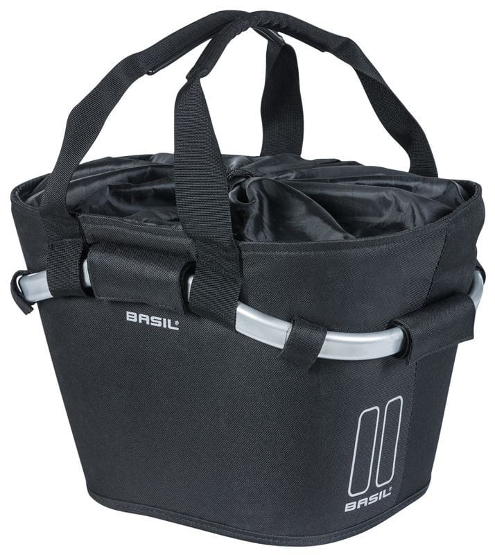 Koszyk Basil Classic Carry All Front KF to lekki kosz rowerowy w stylowym czarnym kolorze. Jest to idealny kosz do codziennego użytku i jest przydatny na wiele sposobów. Możesz bezpiecznie umieścić swój lunch, kurtkę i inne niezbędne rzeczy. Dzięki uchwytom do przenoszenia możesz zabrać koszyk ze sobą do sklepu i załadować zakupy, zanim ponownie go zamocujesz przed podróżą powrotną do domu. Wykonany jest z wodoodpornego poliestru i ma sznurek do ściągania. Odblaskowe akcenty ze wszystkich stron zwiększają widoczność i bezpieczeństwo podczas jazdy. Kosz ma pojemność 15 litrów i jest wyposażony w płytkę adaptera Basil Klickfix (BAS-70158). Ta płytka sprawia, że ??kosz jest kompatybilny z systemem Klickfix. Wspornik Klickfix należy zakupić osobno.