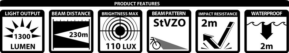 W przeciwieństwie do innych świateł rowerowych zatwierdzonych przez StVZO, obraz świetlny SL F nie ogranicza się o małego paska, ale tworzy szeroki i jednorodny dywan światła bezpośrednio przed przednim kołem.
