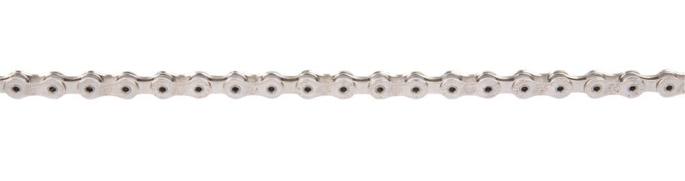 Bardzo lekki i wytrzymały łańcuch 9-rzędowy. Wszystkie ogniwa niklowane. Drążone bolce utwardzane powierzchniowo w technologii DHA. Jest to wyjątkowo odporna na ścieranie i rdzę powłoka z węglików chromu o twardości sięgającej 1500 HV. Łączony spinką.