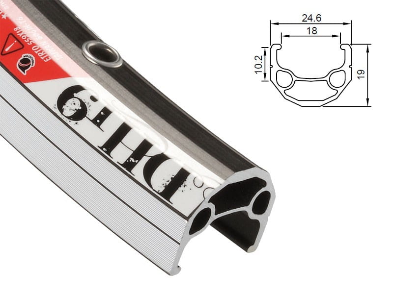 Wskaźnik zużycia obręczy - głęboka na 0,3mm linia biegnąca po ściankach bocznych. Po zatarciu się linii zalecana jest wymiana obręczy.