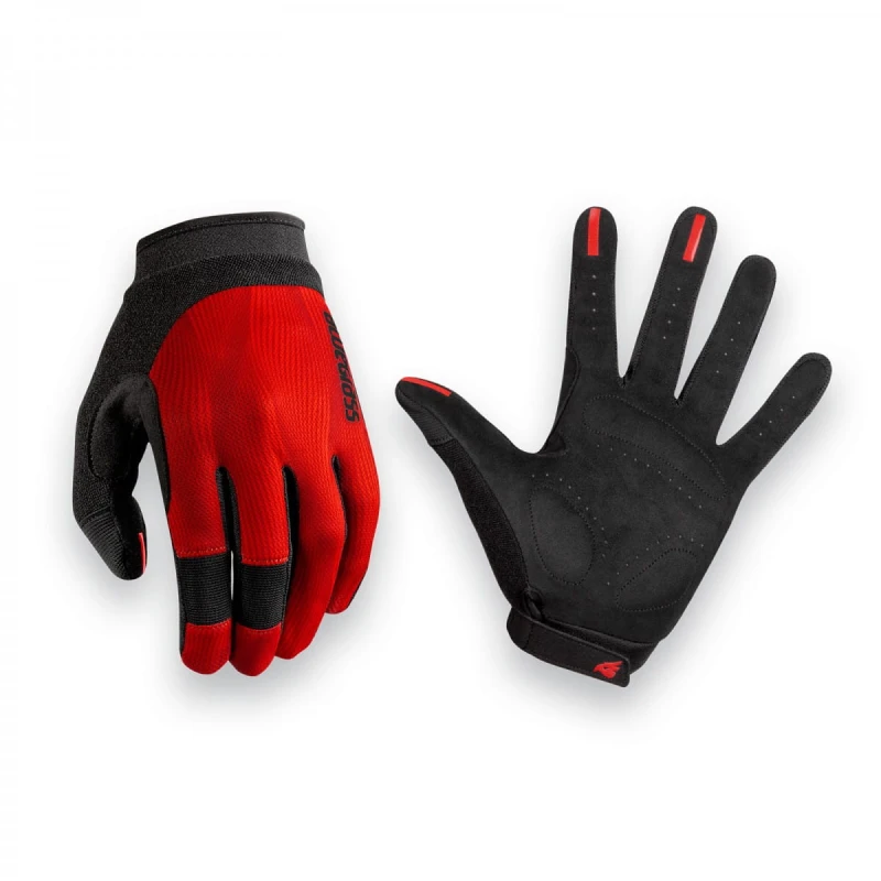 Rękawiczki z długimi palcami przeznaczone do XC / Enduro / BMX. Góra wykonana z elastycznego, oddychającego materiału. Anatomiczne ukształtowanie. Silikonowy uchwyt na nadgarstku zakończony paskiem na rzep. Wykonane z materiału poprawiającego wentylację i komfort użytkowania. Miękka wkładka na kciuku do otarcia twarzy z potu i brudu. Wzmocniony materiał na końcach palców. Silikonowy, antypoślizgowy nadruk na palcach dla lepszej kontroli nad klamkami hamulcowymi. Bez rzepu doskonale przylegają do nadgarstka. Rozmiary: M 21,5 -23 cm, L 23 - 24,5 cm.