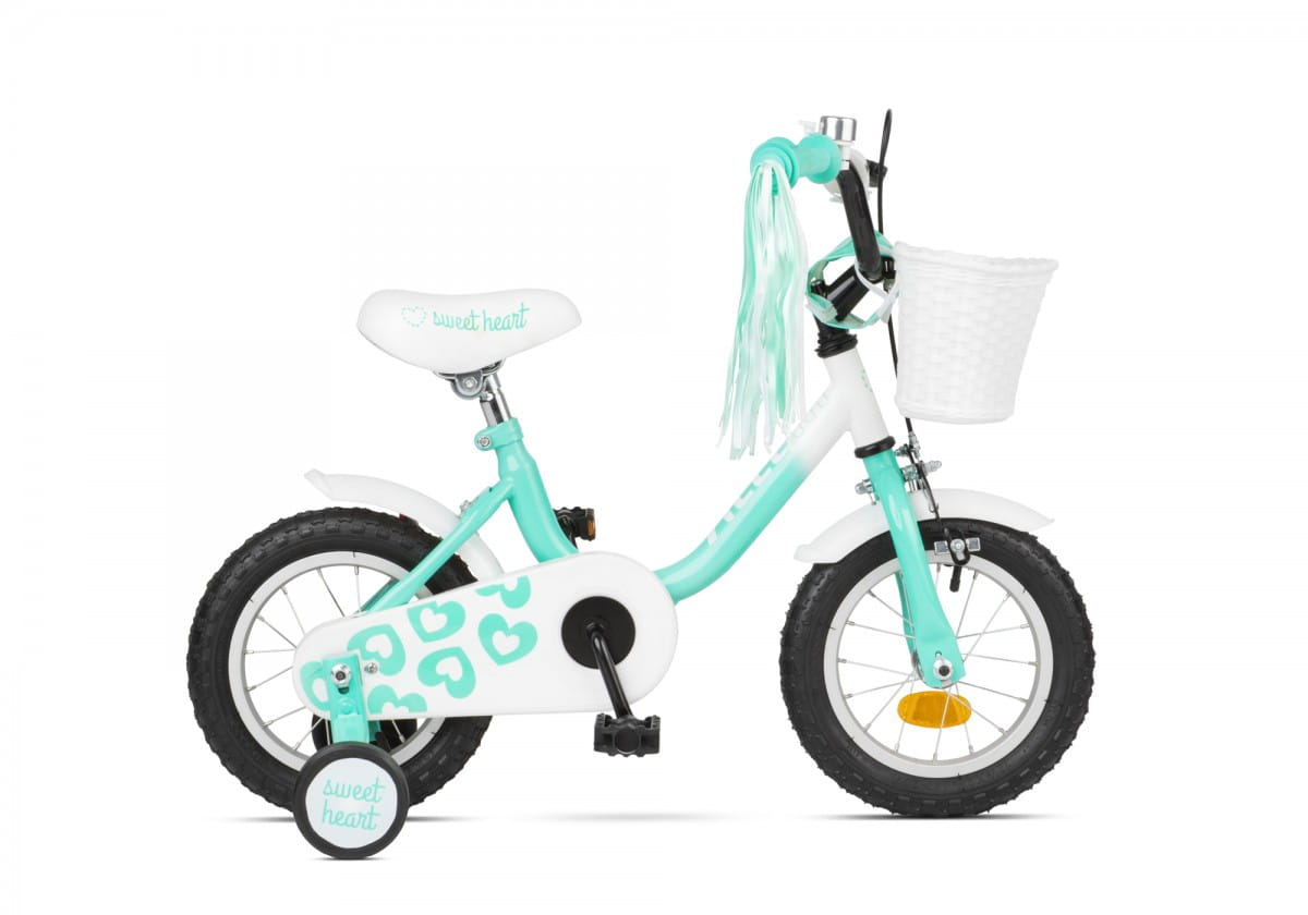 Dziewczęcy rowerek na kołach 12”. Zbudowany tak, by ułatwić dziecku naukę jazdy na rowerze. Kształt ramy z obniżoną górną rurką upraszcza wsiadanie i zsiadanie. Inne cechy tego roweru: