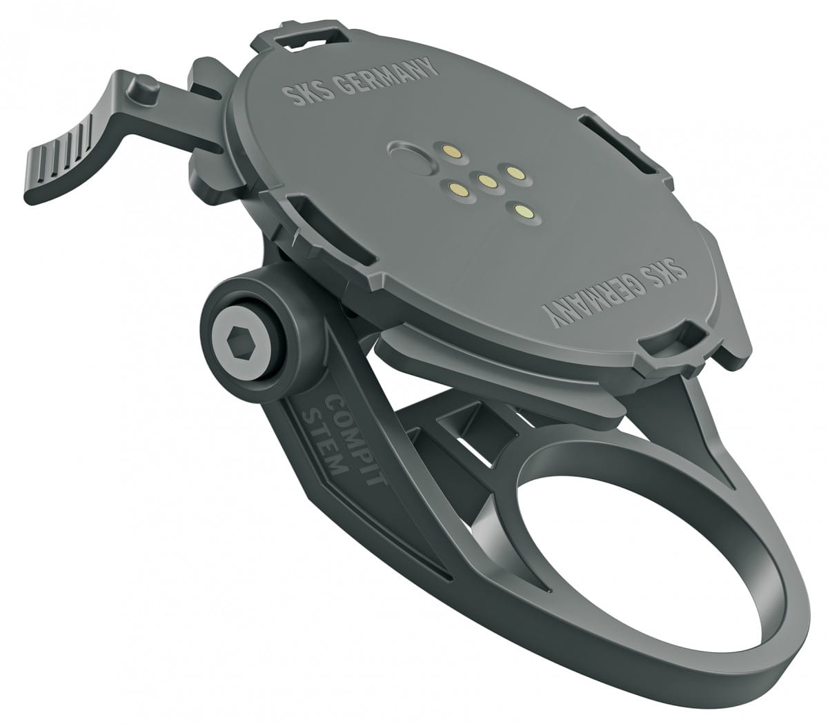 Uchwyt COMPIT firmy SKS jest kompatybilny ze wszystkimi innymi mocowaniami SKS. Uchwyt przeznaczony do montażu na wsporniku kierownicy 1-1/8"