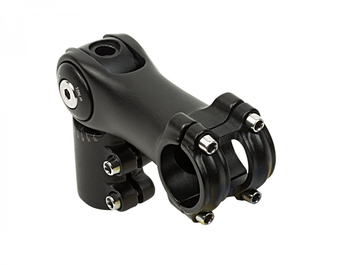 Wspornik kierownicy typu ahead z regulowanym kątem nachylenia. Wykonany z kutego na zimno stopu aluminium 6061-T6. Średnica widelca: 1-1/8". Średnica kierownicy: 31,8 mm. Kąt: 0° do +60°. Długość: 90 mm. Waga: 392 g. Kolor: czarny piaskowany.